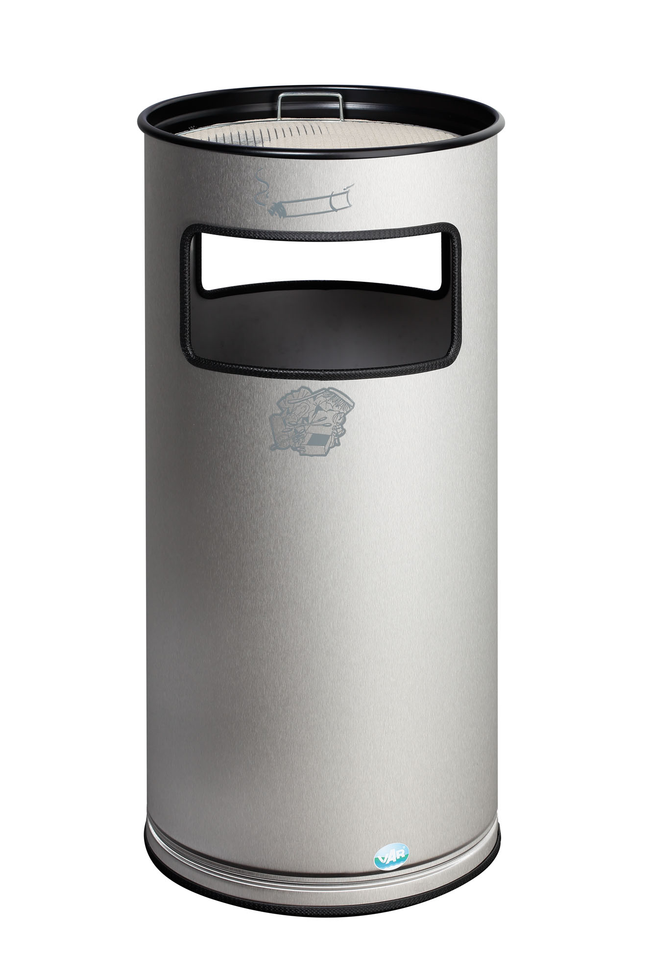 VAR Abfallsammler & Ascher H 70 – Aluminium ALMg1, Meerwasserbeständig eloxiert, 37,3 Liter, mit Edelstahl- oder Stahl-Aschereinsatz, Kombi-Ascher für Innenbereiche