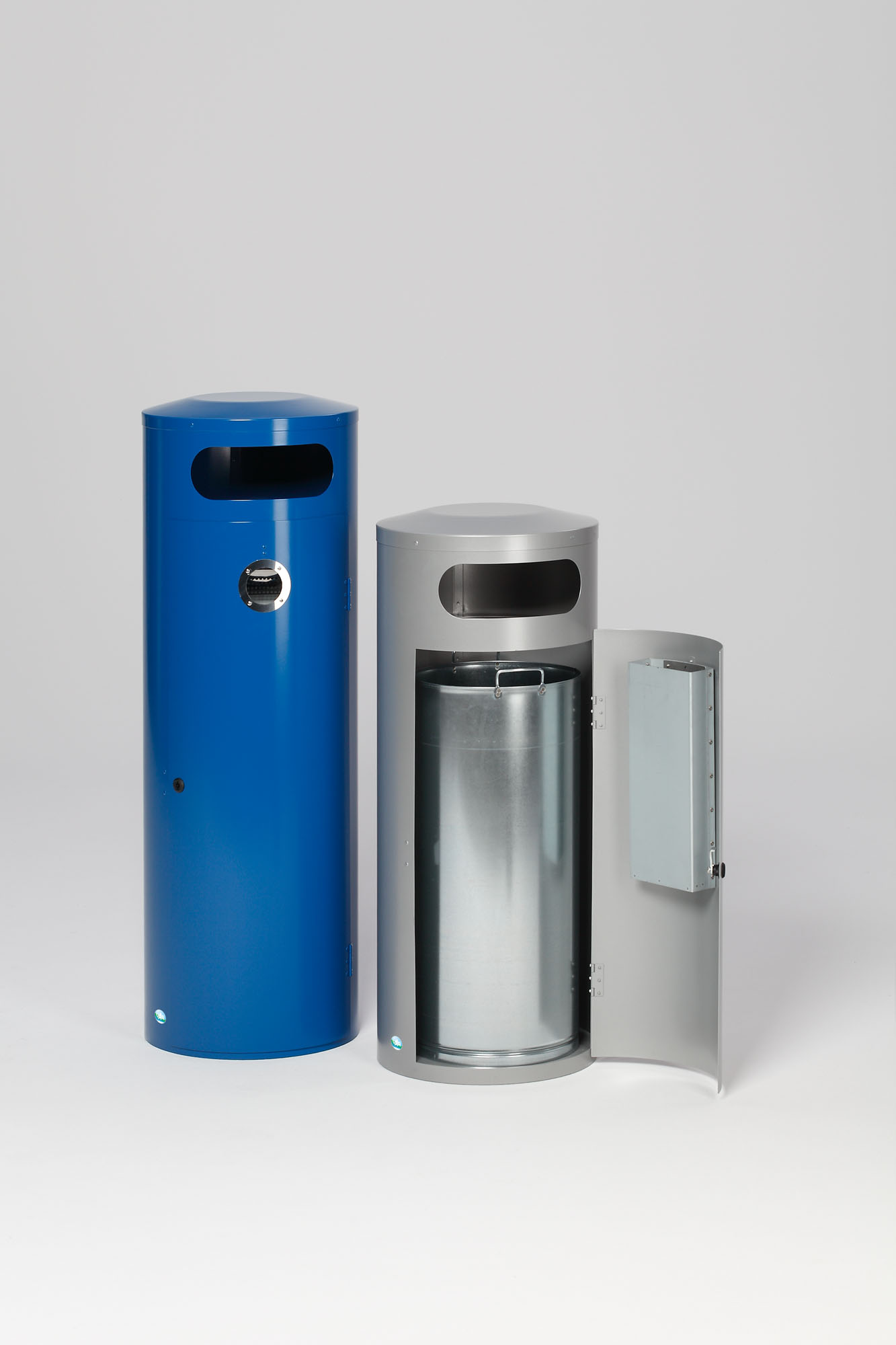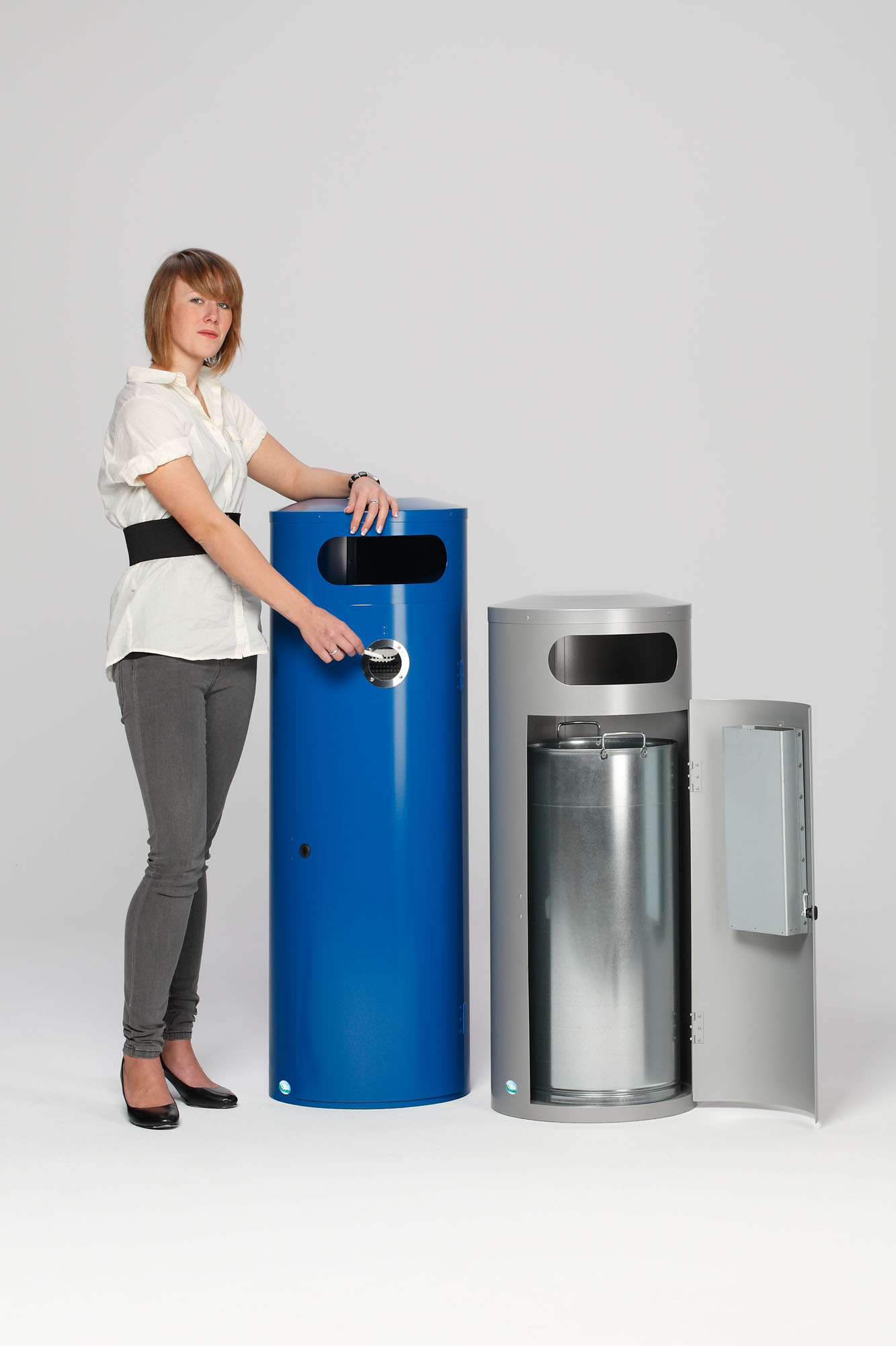 Der VAR Abfallsammler & Ascher KS 70 & 90 überzeugt durch seine robuste Verarbeitung aus verzinktem Stahlblech mit widerstandsfähiger Pulverbeschichtung. Ausgestattet mit einem verzinkten Inneneinsatz mit praktischem Bügelgriff und einer Einflügeltür mit Doppelbartschloss bietet dieser Abfallbehälter sichere, komfortable Entsorgung. Der innenliegende, abnehmbare Ascher aus verzinktem Stahlblech ist mit Abstreifblech versehen. Die Einwurföffnung ist mit einem Edelstahlring eingefasst und sorgt für sauberen Einwurf. Erhältlich in den Volumina 70 und 90 Liter in fünf Farben.