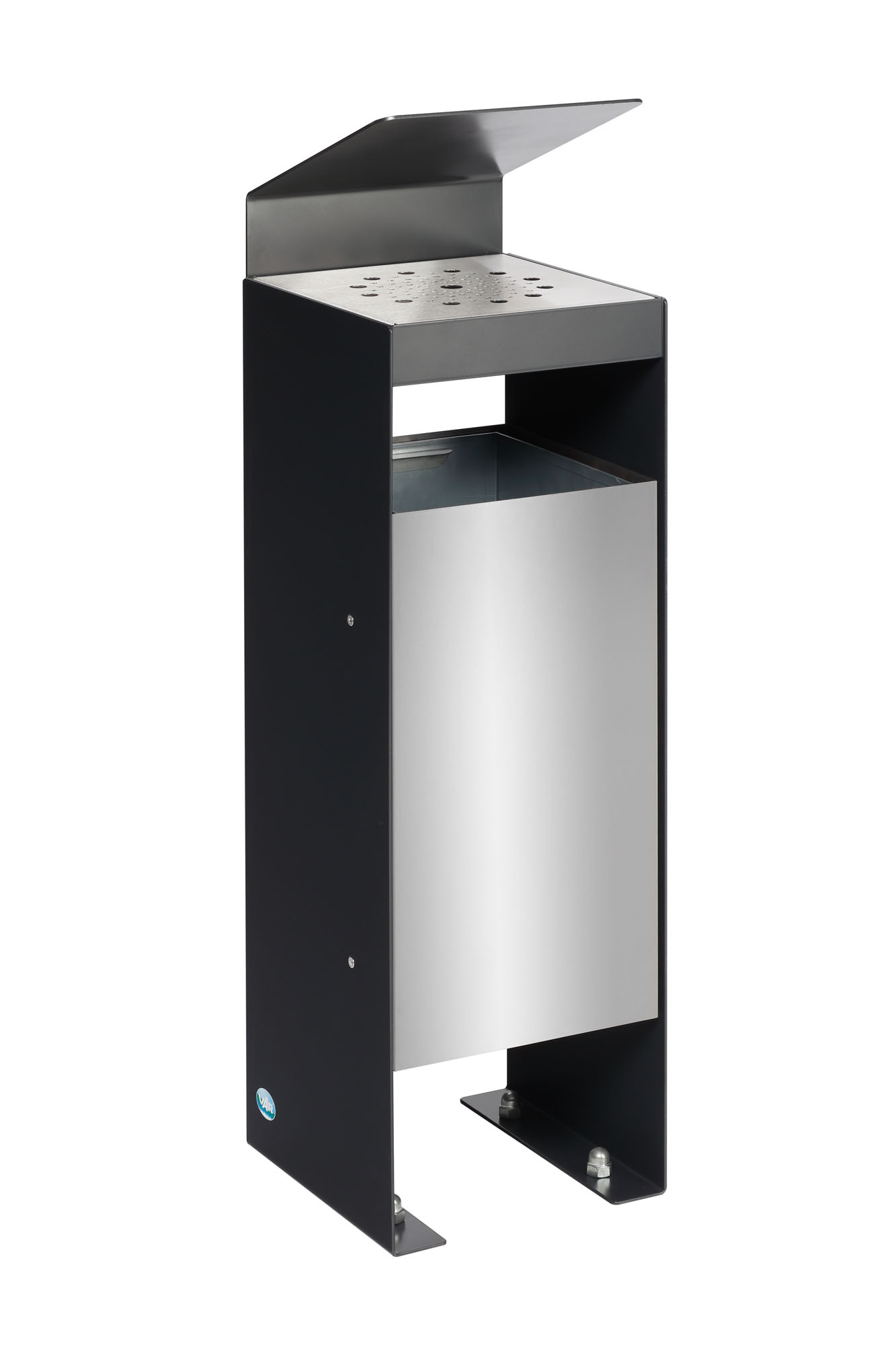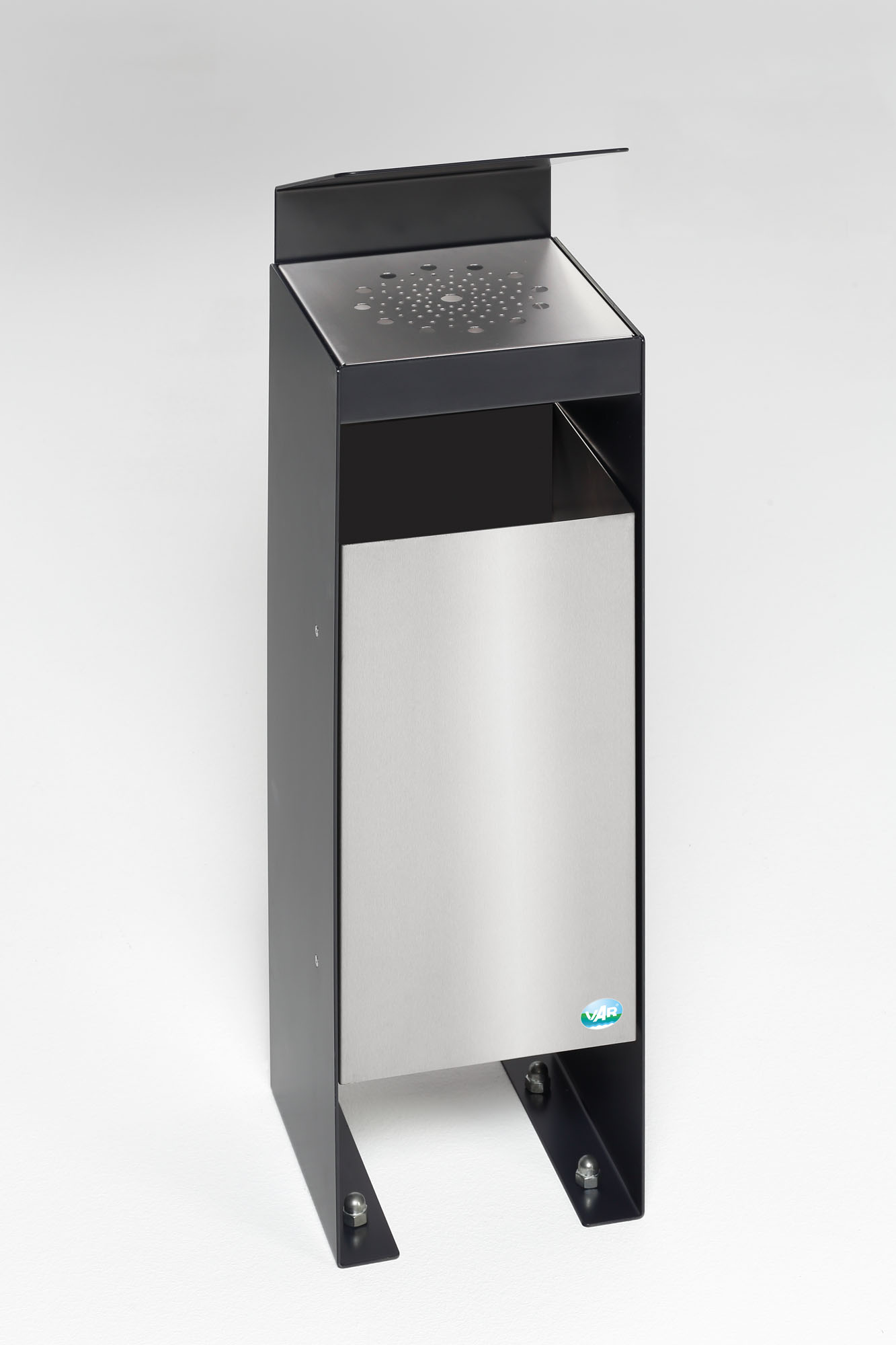 VAR Abfallsammler/Ascher Q 25 – Kombi-Abfallbehälter mit integriertem Ascher | pulverbeschichtet & wetterfest
