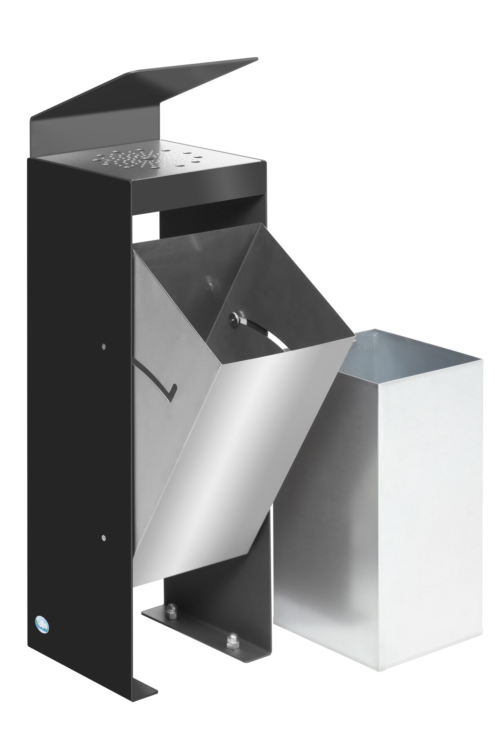 Der Q 25 wird als freistehender Behälter geliefert. Zum Entleeren einfach Schloss öffnen und Behältereinsatz entnehmen. Reinigen Sie Gehäuse und Ascher regelmäßig mit mildem Reinigungsmittel – so behalten Farbe und Funktion lange ihre Qualität.