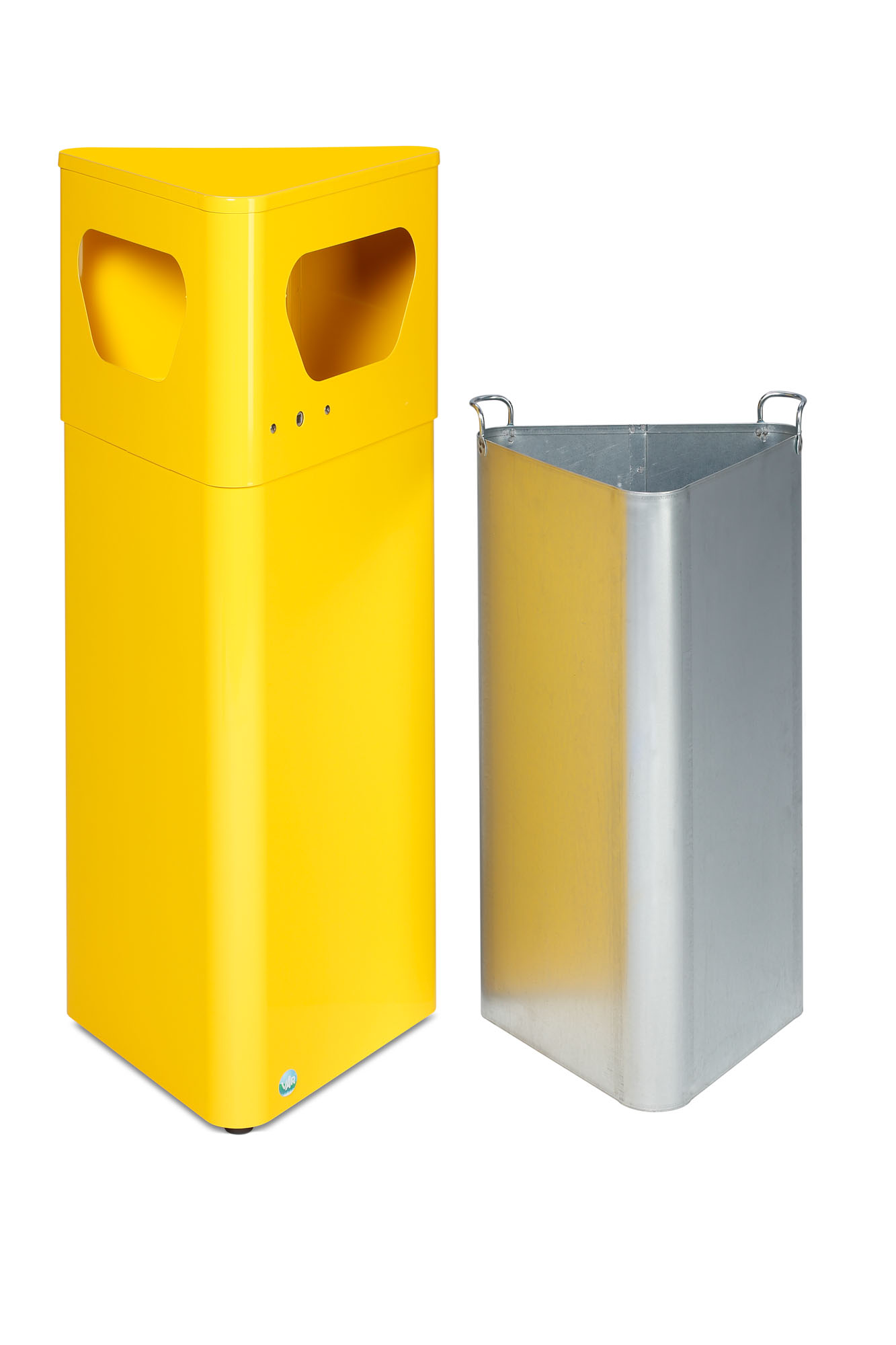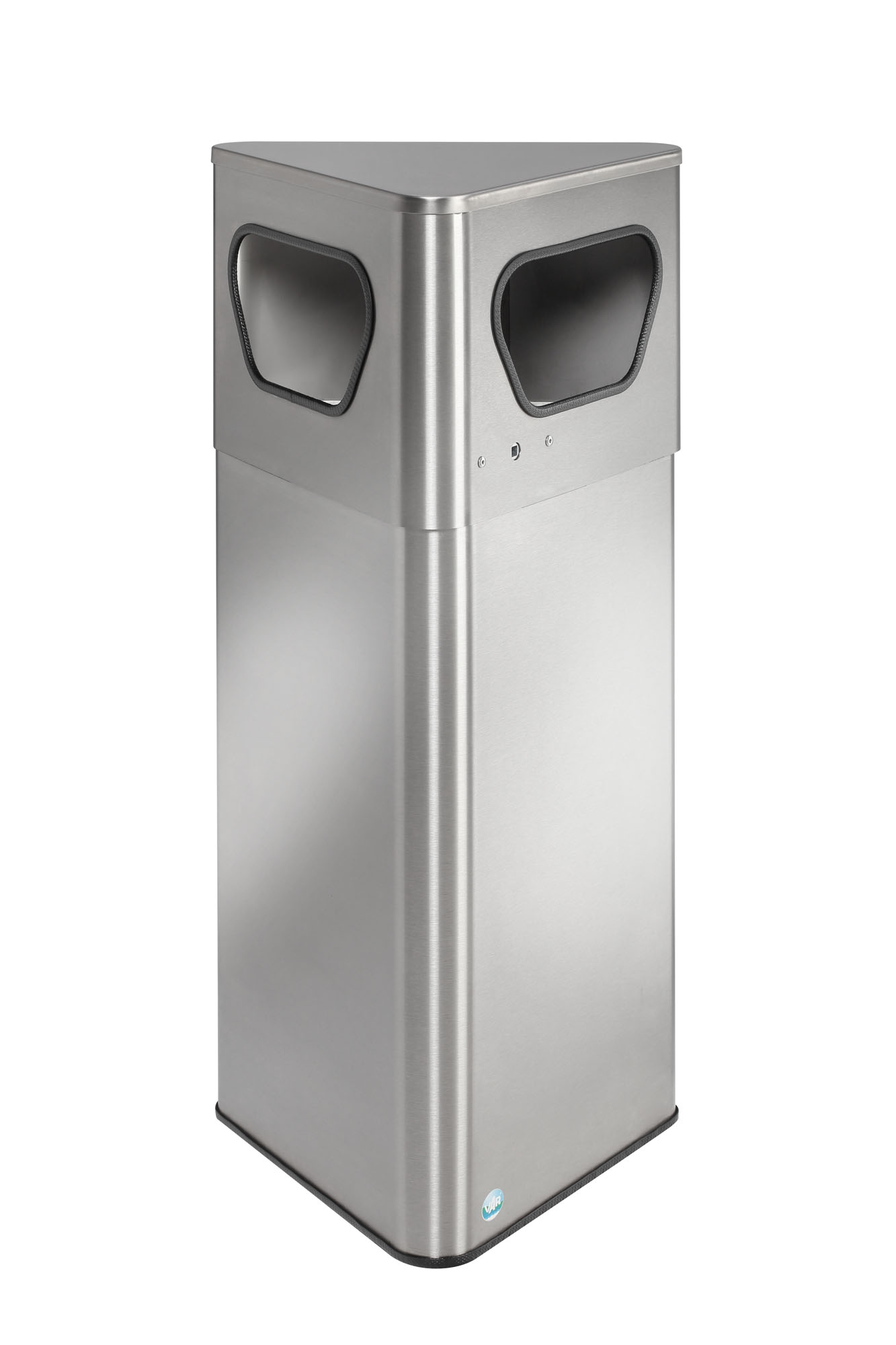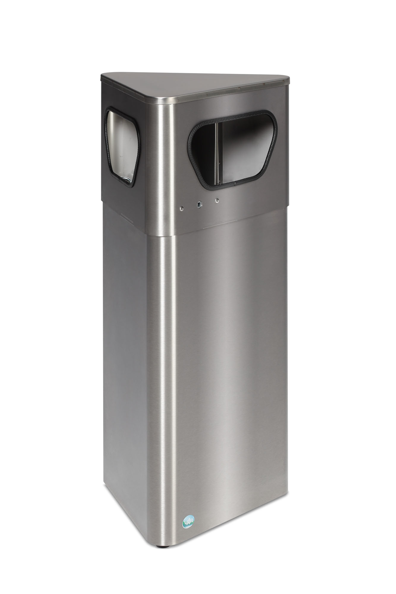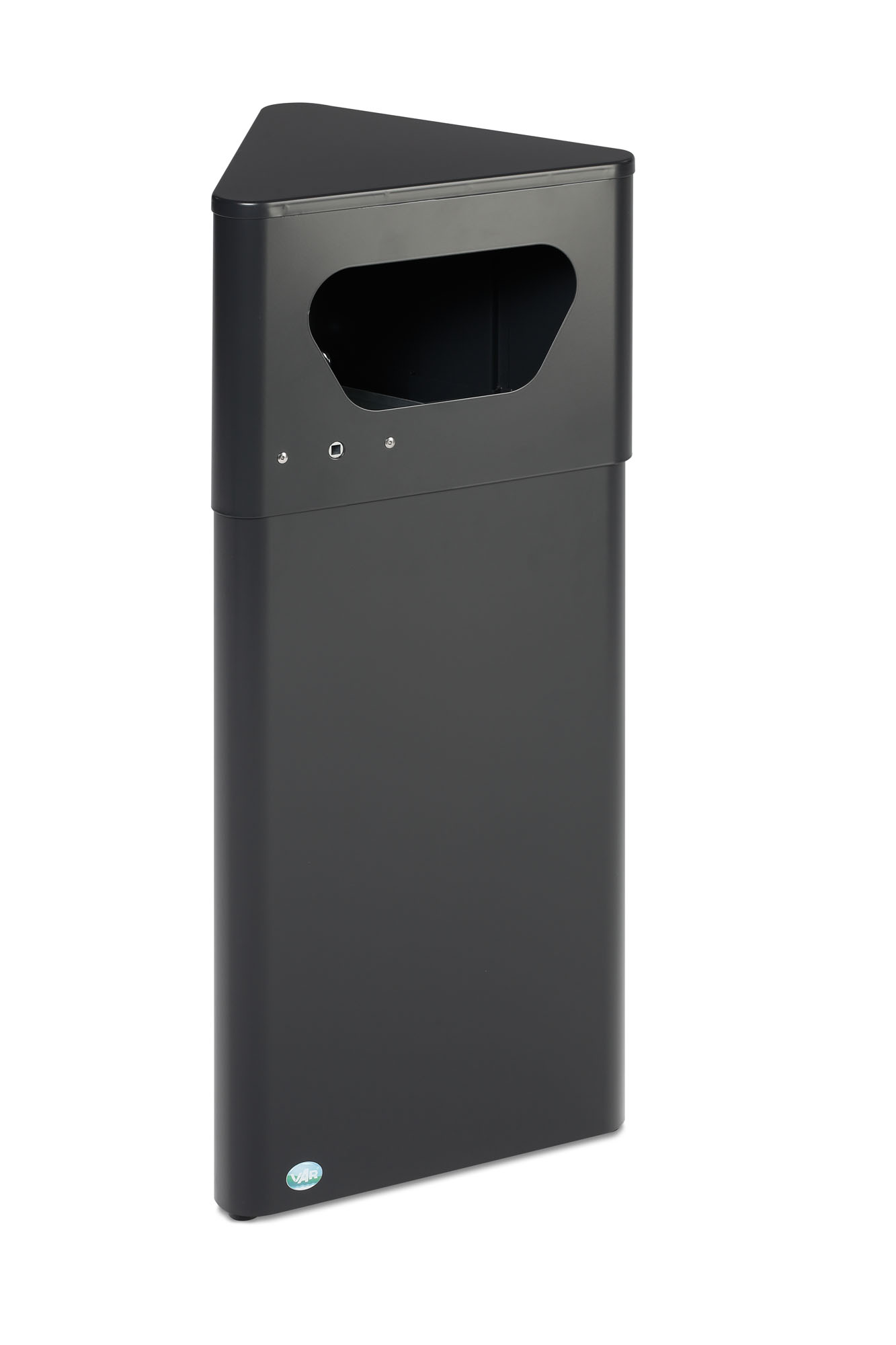 Der VAR DE41 bringt mit seinem trapezförmigen Gehäuse frischen Wind in Ihr Abfallmanagement: Stellbar in Ecken oder modular aneinandergefügt als Entsorgungsblock. Das pulverbeschichtete, elektrolytisch verzinkte Stahlblech in tiefschwarz ist witterungsbeständig und vandalismussicher – ideal für Innen- und Außenbereiche.