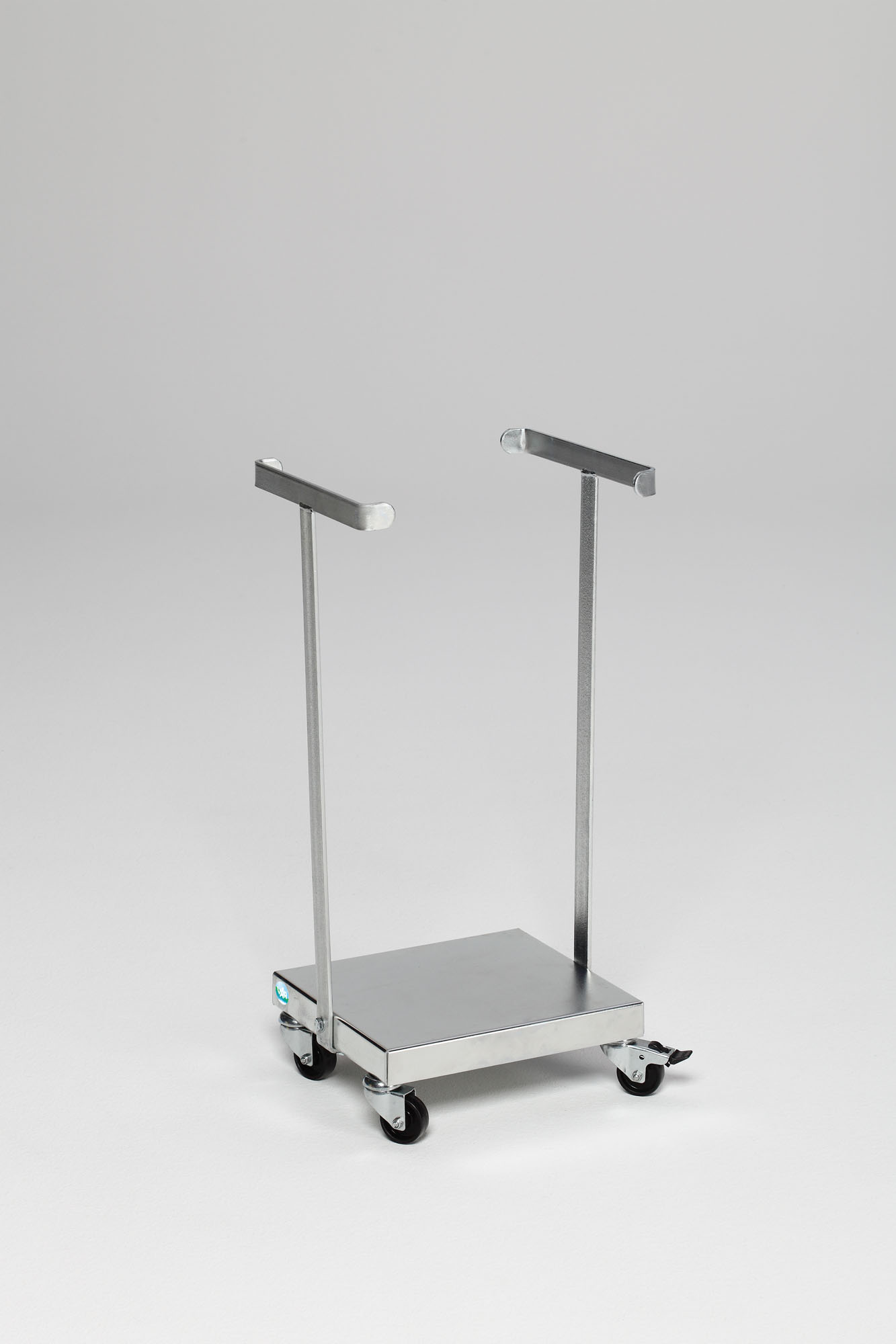 Suchbegriffe: Abfallsammler SH 60, Müllsackständer mit Fußpedal, verzinkter Sackhalter, fahrbarer Müllwagen.