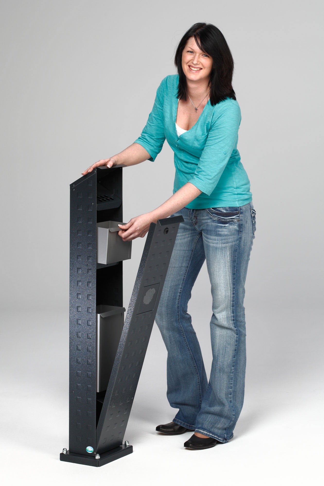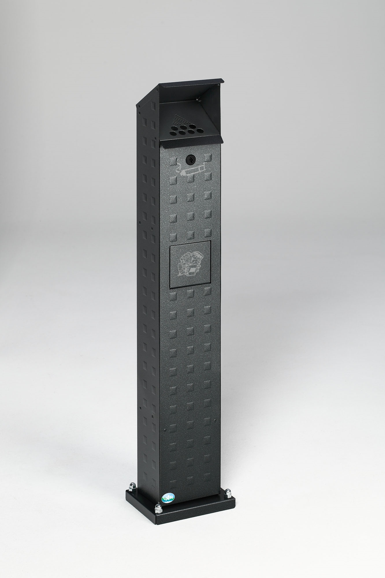 Die VAR Abfallsäule SG 115 besteht aus hochwertigem Aluminium A1Mg1 mit einer widerstandsfähigen, eloxierten Oberfläche, die besonders unempfindlich gegen Witterungseinflüsse und meerwasserbeständig ist. Die dezente Prägung verleiht der Säule ein attraktives und elegantes Erscheinungsbild. Ausgestattet mit einer stabilen Bodenplatte, einem 2-Liter-Ascher und einem 5-Liter-Abfallbehälter inklusive Inneneinsatz sowie einem sicheren Doppelbartschloss, ist die Säule die ideale Lösung für hygienische und ordentliche Müllentsorgung in öffentlichen und gewerblichen Außenbereichen.