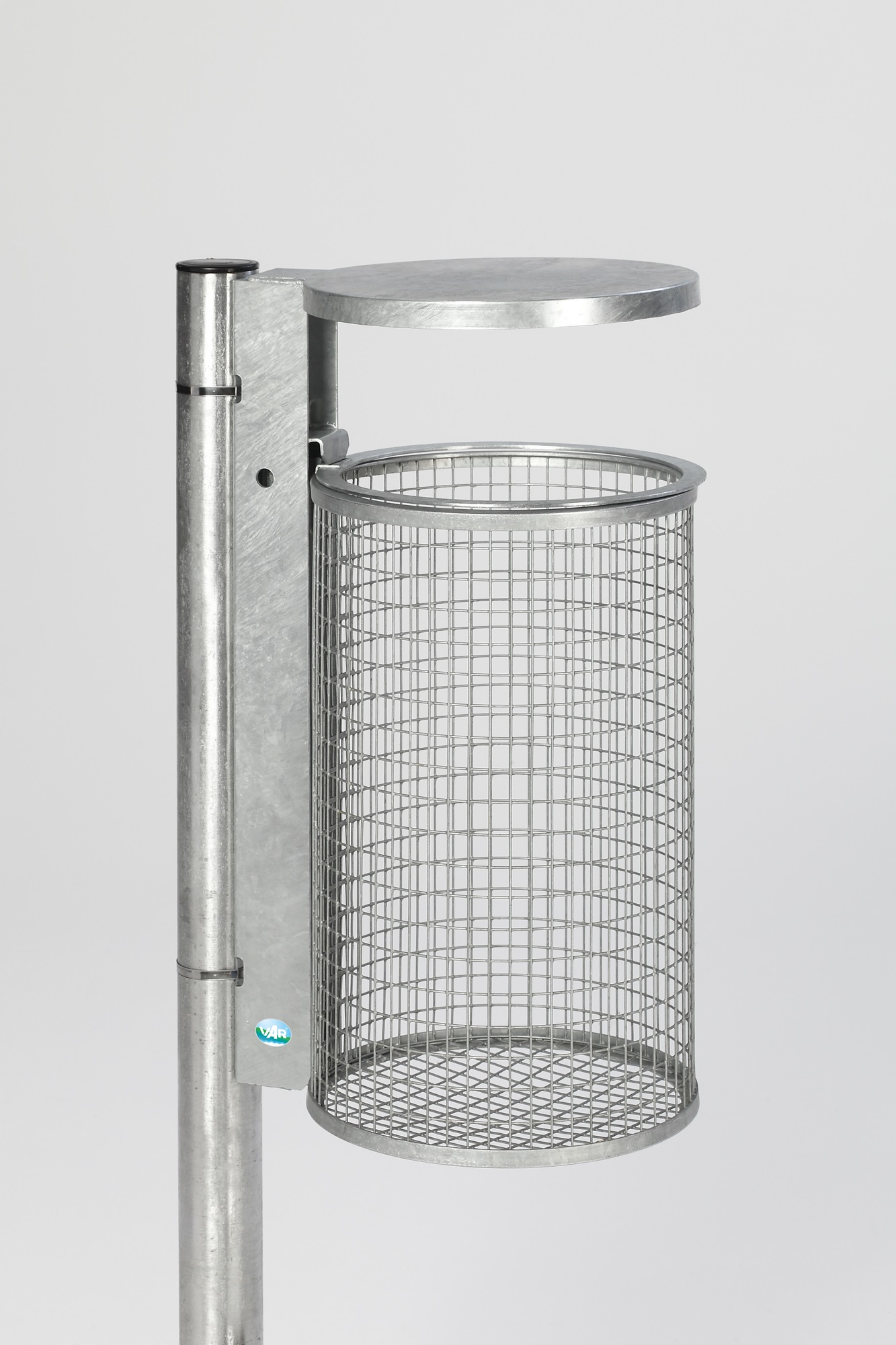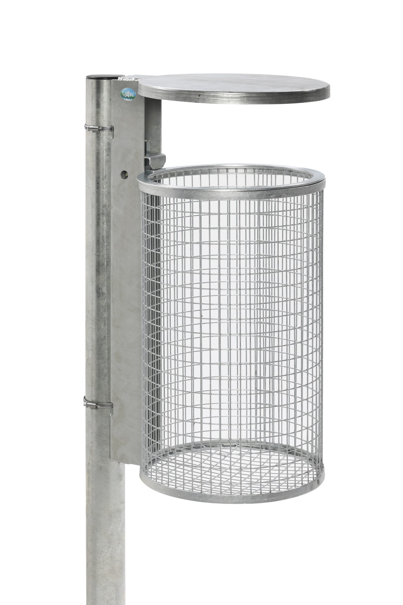 VAR AS Typ WR 2 Abfallsammler mit Schutzdach, 50 Liter, feuerverzinkt für den Außenbereich, mit Dreikantschloss und Inneneinsatz
