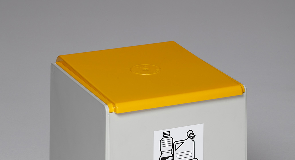 Schlagzäher Polystyrol-Deckel, passend für lichtgraue 40 L Korpus (RAL 7035). In 7 Farbtönen erhältlich für klare Wertstoff-/Mülltrennung.