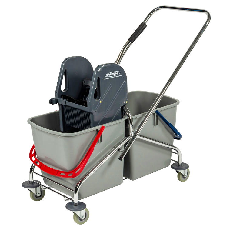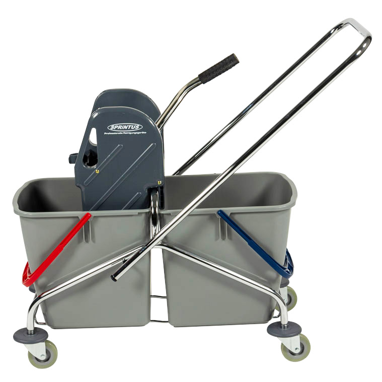 Sprintus Doppelfahreimer Chrom Kunststoffrahmen Metallschubbügel Metall-Lenkrollen 2x27 L Eimervolumen Doppelbacken-Mopp-Presse 93 x 45 x 82 cm | für Reinigungsdienst im Reinigungsbetrieb in Gebäuden