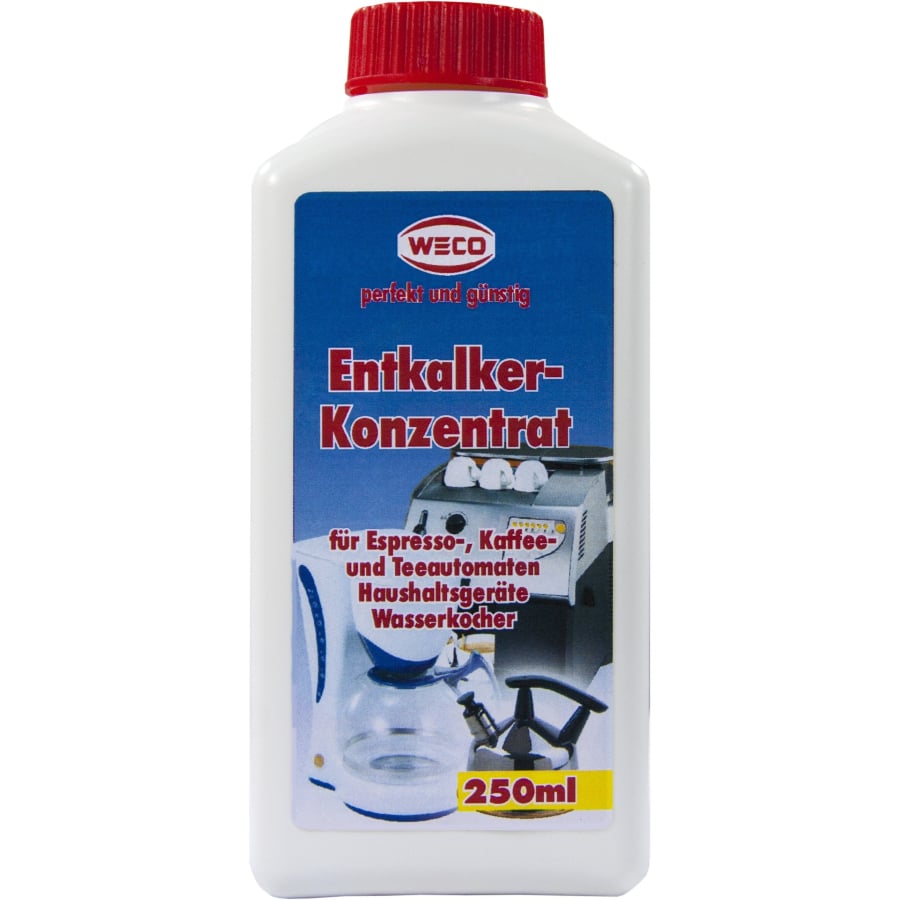 WECO Entkalker-Konzentrat entfernt zuverlässig Kalkablagerungen in professionellen Geräten wie Kaffeemaschinen, Dampfreinigern und Wasserkochern. Die kraftvolle Formel sorgt für lange Gerätelebensdauer und eine gleichbleibend hohe Leistung – ideal für den täglichen Einsatz in Gastronomie und Hotellerie.