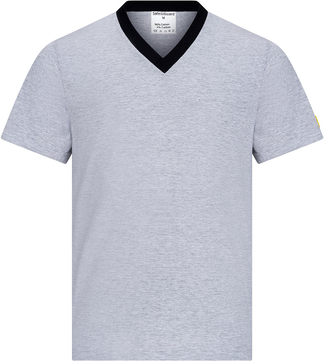 Das ESD-T-Shirt in hellgrau kombiniert angenehmen Tragekomfort mit normgerechtem Schutz vor elektrostatischer Entladung gemäß DIN EN 61340-5-1. Durch den Materialmix aus 96 % Baumwolle und 4 % Carbonfaser bietet das Shirt eine hautfreundliche, atmungsaktive Struktur bei gleichzeitiger Antistatik-Funktionalität. Das aufgestickte ESD-Logo auf dem linken Ärmel signalisiert sofortige Schutzwirkung im EPA-Bereich.