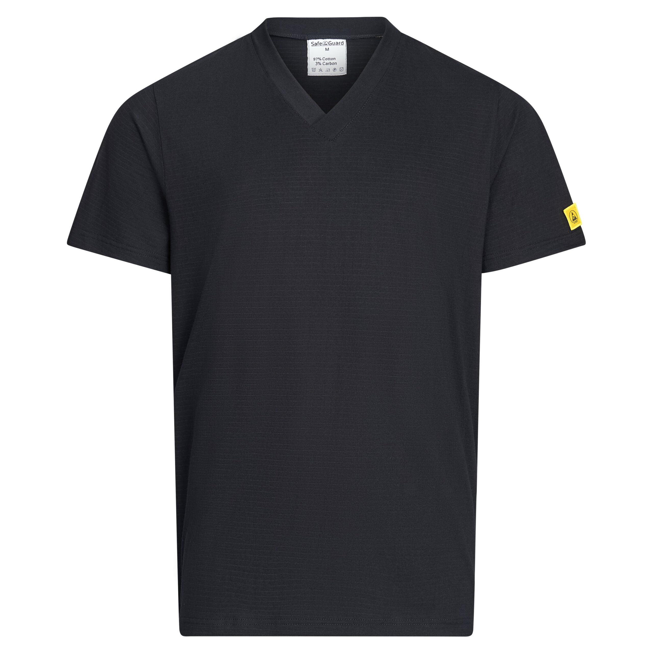 Das Shirt verfügt über einen modernen V-Ausschnitt, eine dezente Knopfleiste und einen kontrastierenden schwarzen Kragen – ideal für ein gepflegtes Erscheinungsbild im professionellen Umfeld. Der Ableitwiderstand liegt typischerweise im Bereich von 10⁵ bis 10⁷ Ohm. Mit einem Flächengewicht von 150 g/m² ist es optimal für dauerhafte Tragezeiten bei voller Bewegungsfreiheit.