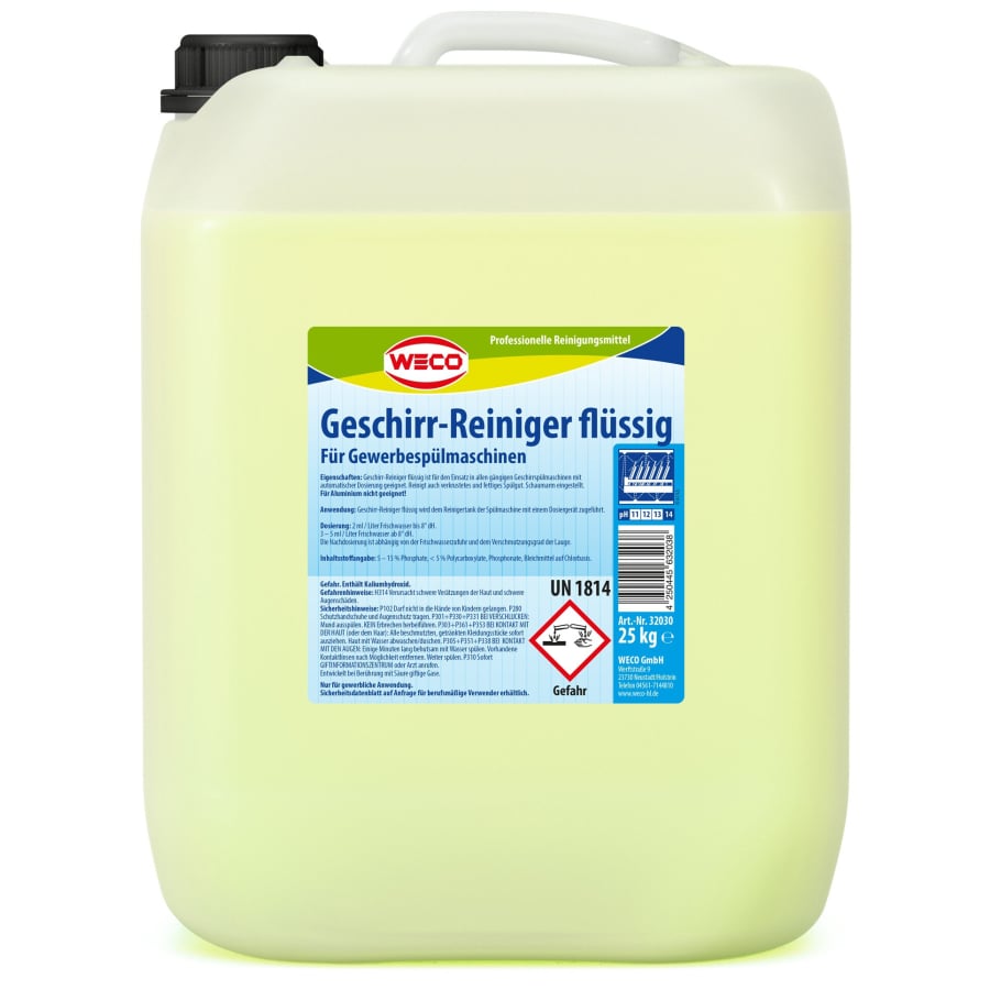 WECO Geschirr-Reiniger Flüssig mit Chlor – Intensivreiniger für Spülmaschinen (12 kg oder 25 kg Kanister)