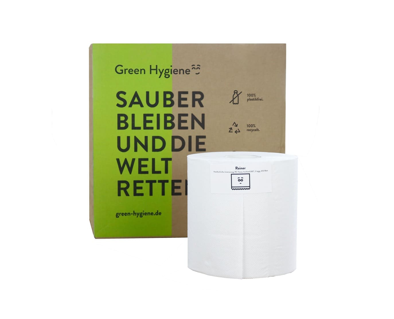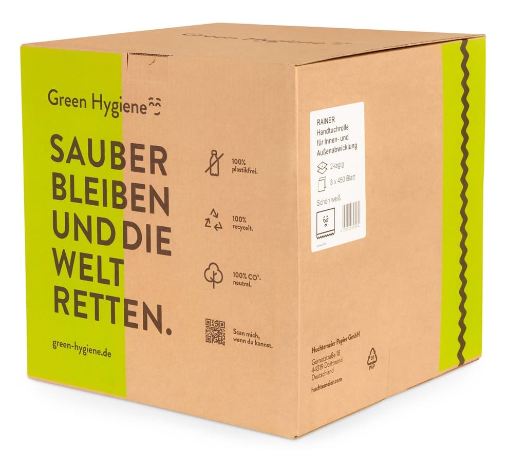 Green Hygiene® präsentiert stolz die Papier-Handtuchrolle "RAINER" als innovative und umweltfreundliche Lösung für Papierspender mit Innenabrollung und Außenabwicklung in Betriebsräume, Waschräumen oder Küchen. Hergestellt aus 100% recyceltem Papier, bieten diese Tissue-Handtuchrollen eine nachhaltige Alternative mit einer beeindruckenden Kombination aus hoher Effizienz und herausragender Reinigungsqualität.