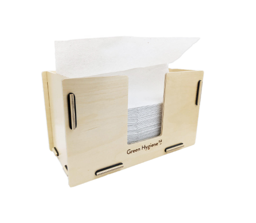 Die Verwendung von Birkenholz und einer umweltschonenden Behandlung macht den Spender zu einem Vorreiter in puncto ökologische Verantwortung. Die robuste Konstruktion und das auffällige Design, kombiniert mit dem "Green Hygiene"-Siegel, machen diesen Spender zu einer hervorragenden Wahl für umweltbewusste Betriebe.