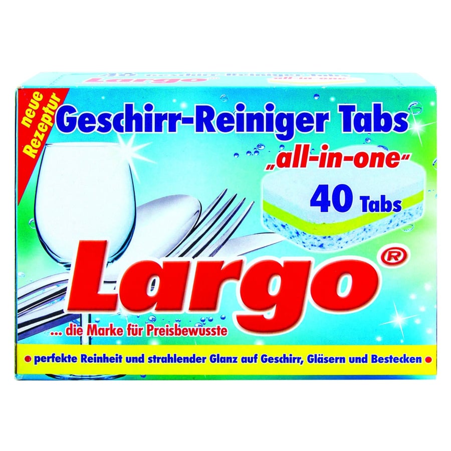 LARGO All-in-One Geschirr-Reiniger Tabs für Gewerbespülmaschinen – 40 Tabs à 20 g mit Klarspüler, Salzfunktion und Glasschutz