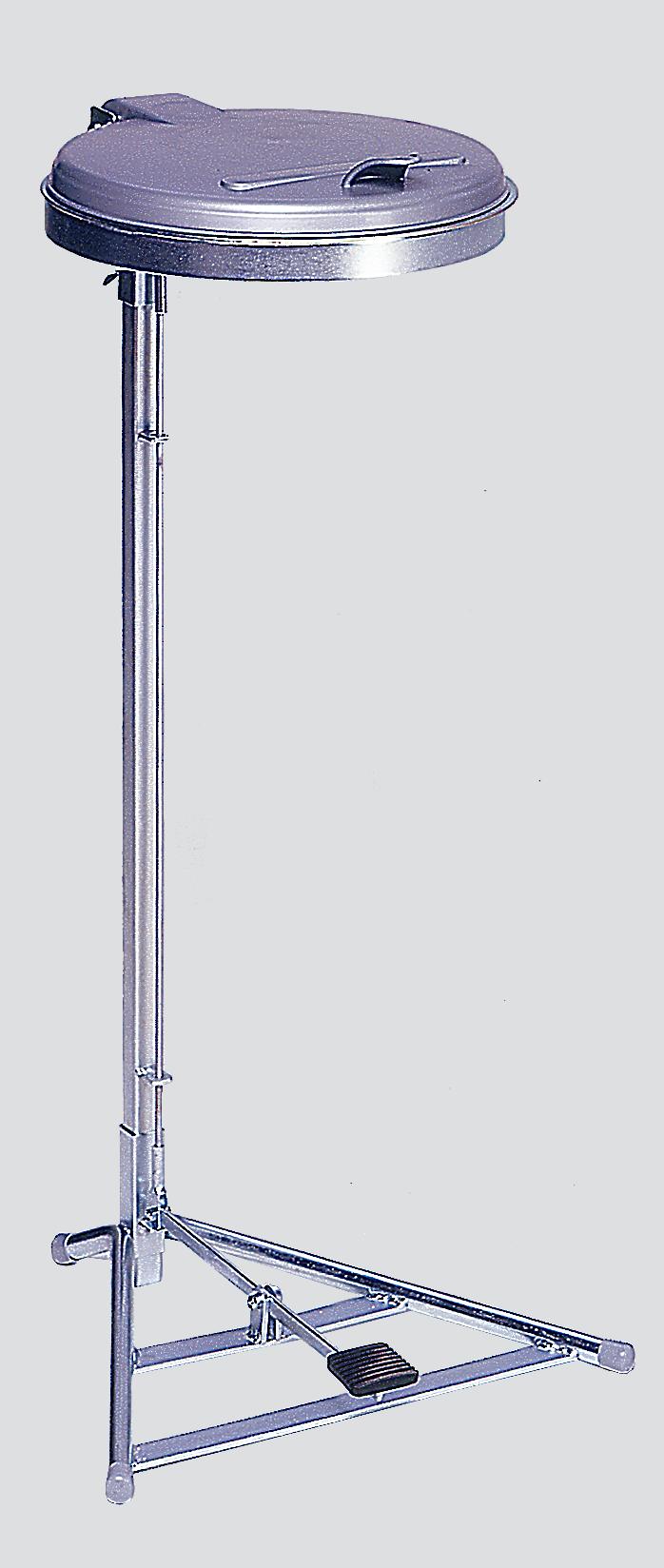 Stabiler, pulverbeschichteter Stahl-Sackständer mit Kunststoff-Klappdeckel und hygienischer Fußpedal-Betätigung. Für 120 L Säcke, wahlweise verzinkt oder schwarz lackiert.