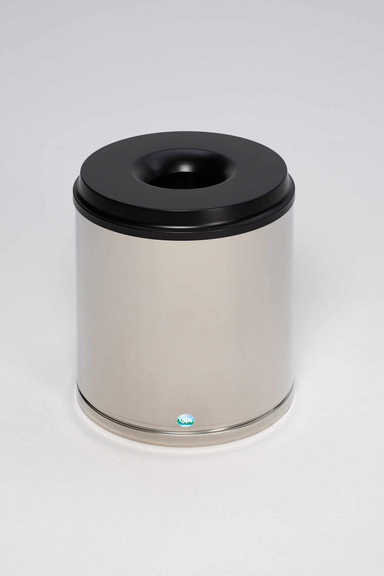 VAR Papierkorb mit Löschkopf – Edelstahl, selbstlöschend mit Inneneinsatz
