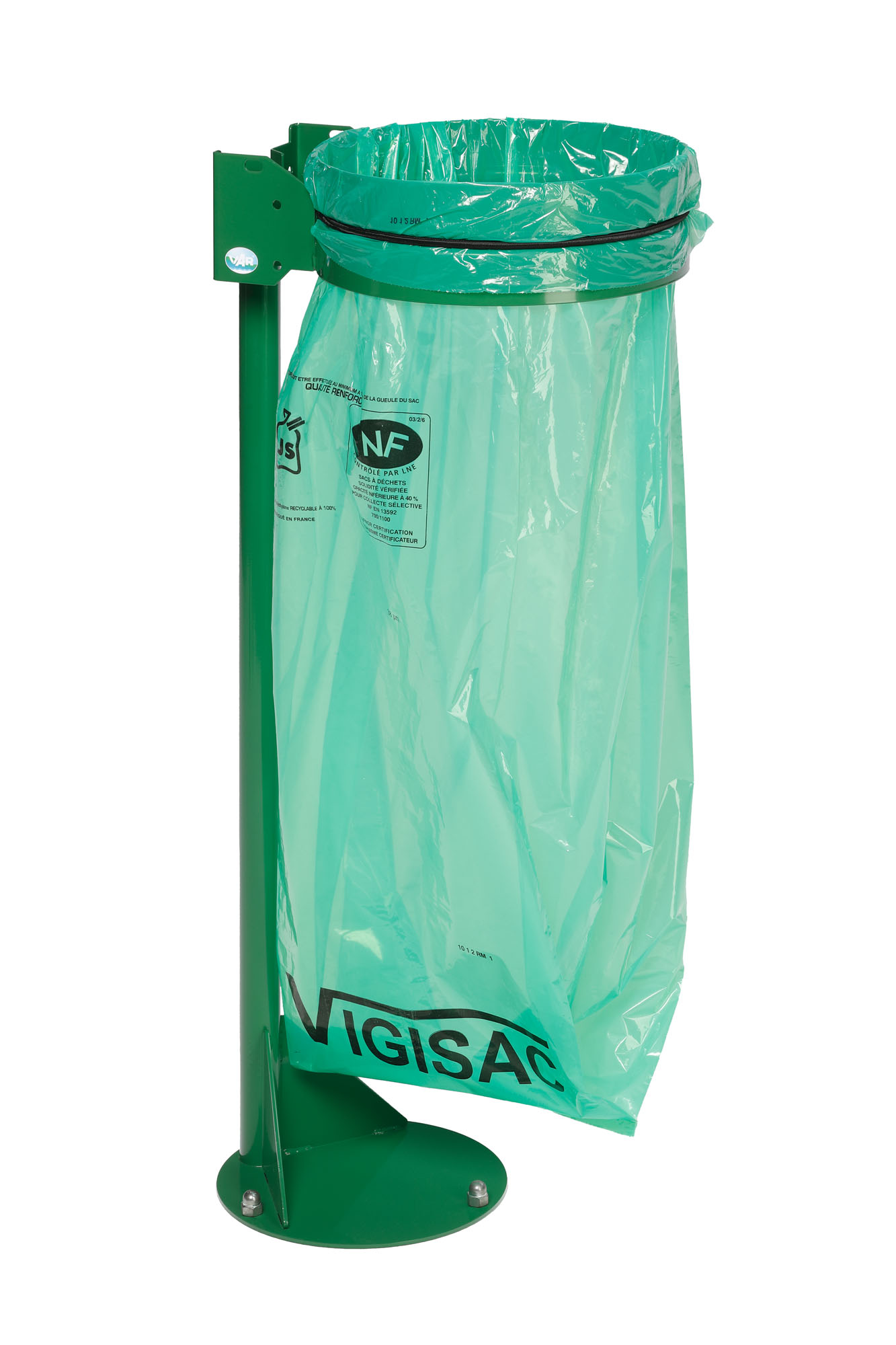 Der robuste Standhalter aus pulverbeschichtetem Stahl mit Gummiring zur Sackbefestigung ist ideal für Parkanlagen, Logistikzentren und Werkshallen. Dank Bodenverankerung steht er sicher und wackelfrei.