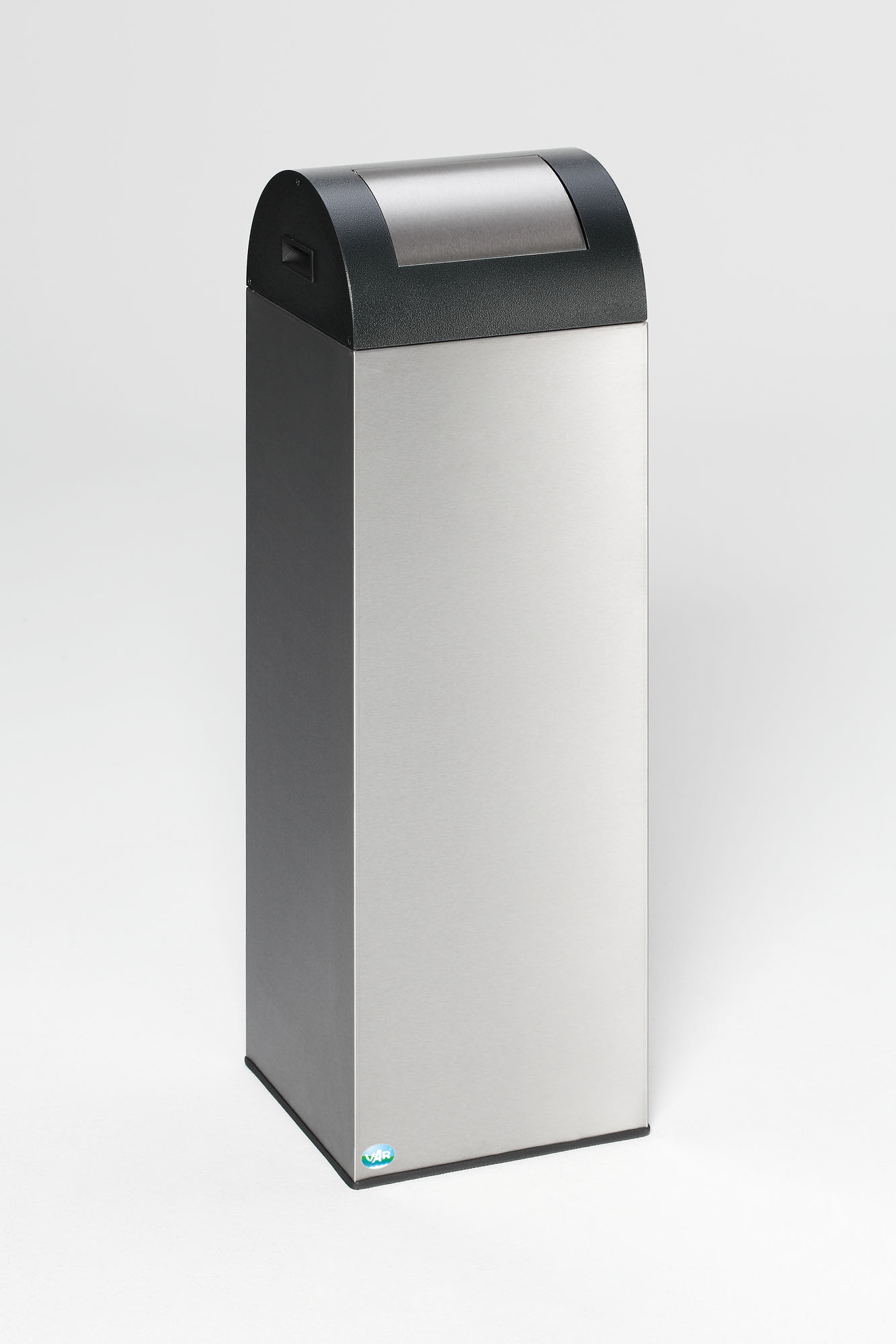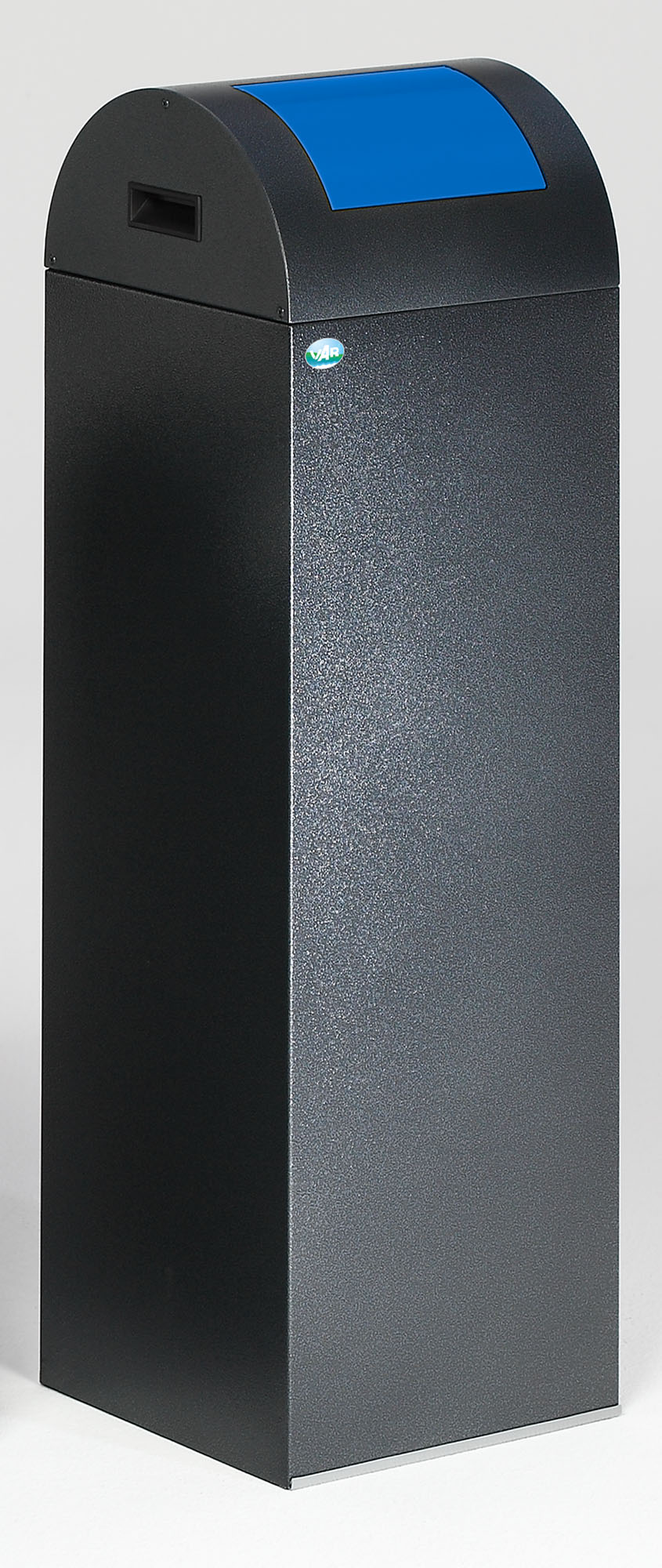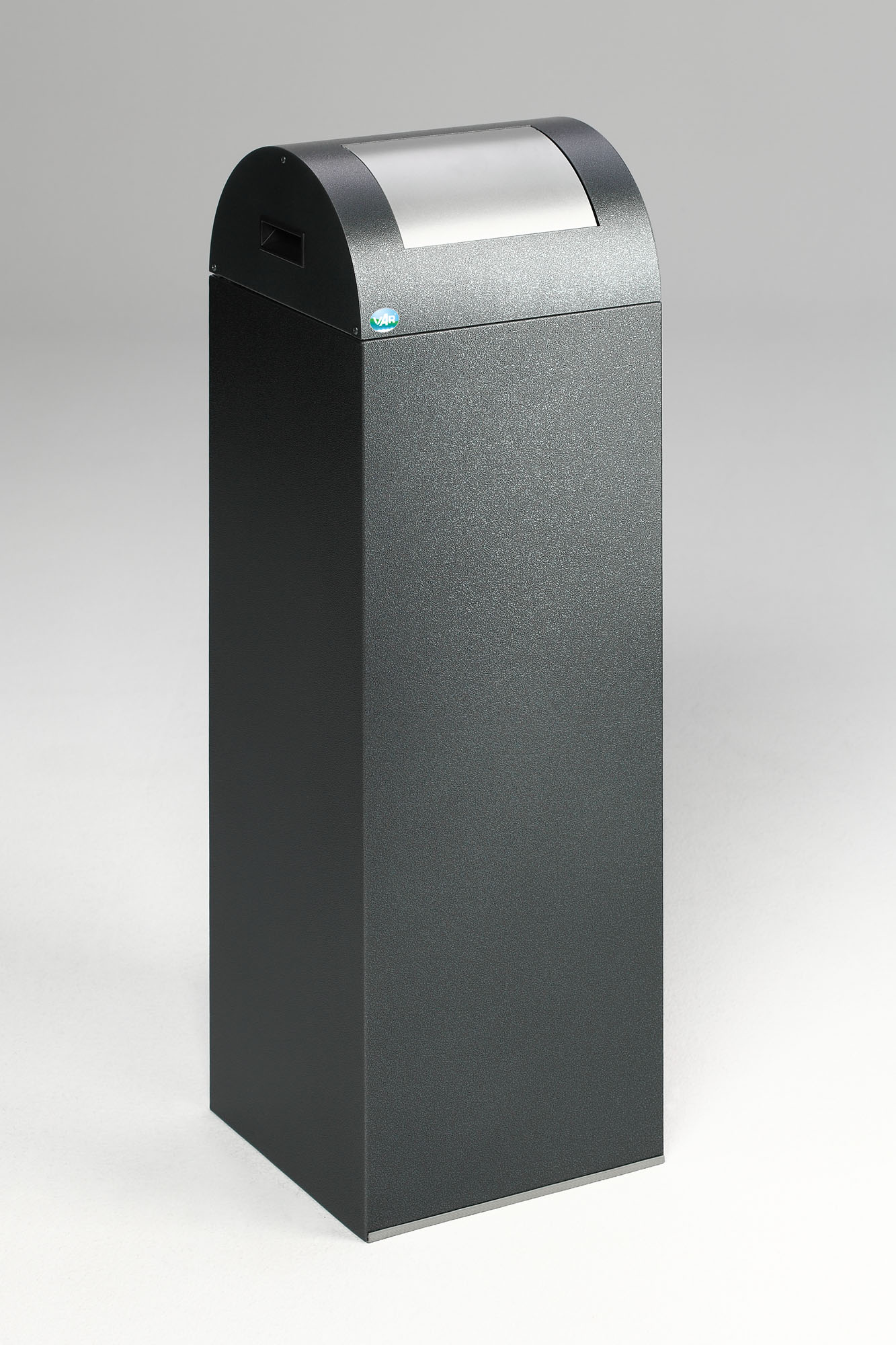 Der VAR WSG 85 R ist Ihre Brandschutz-Lösung für öffentliche Einrichtungen und Arbeitsumgebungen: TÜV-Süd-geprüft selbstlöschend, 89 Liter Volumen und ein klar gelber Push-Einwurf (RAL 1023) für einfache Abfalltrennung. Das robuste Gehäuse aus verzinktem Stahl mit antik-silberner Pulverbeschichtung trotzt Feuchtigkeit, UV-Licht und intensivem Gebrauch.