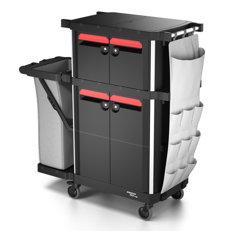 Der VariX ZERO XL Plus CDM ist ein robuster Reinigungswagen von Sprintus, konzipiert für anspruchsvolle Hygiene- und Reinigungsabläufe. Er dient dem transportierenden und sortierenden Handling von Reinigungs- und Hygienematerialien sowie der sicheren Wäschesortierung in kontrollierten Umgebungen. Mit 120 L Wäschesack mit Reißverschluss, einer einklappbaren Entsorgungseinheit, 2 x 20 L Schubladen, 2 x Regalboden, 10-Fach-Multibag, abschließbaren Türen sowie einer Warnschild- und multifunktionalen Toolhalterung unterstützt er Reinigungsteams in Kliniken, Pflegeeinrichtungen, der Lebensmittelproduktion, Gastronomie und Bürogebäuden. In hygienekritischen Bereichen trägt der Reinigungswagen dazu bei, Kontamination zu minimieren, Abläufe zu strukturieren und die Einhaltung von Hygienestandards sicherzustellen.
