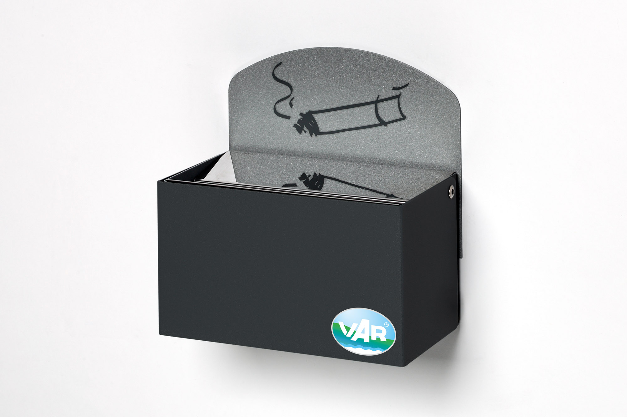 VAR Wandascher WH 9 mit Schild – Robuster Wandaschenbecher aus verzinktem Stahlblech mit Edelstahl-Einwurfblende