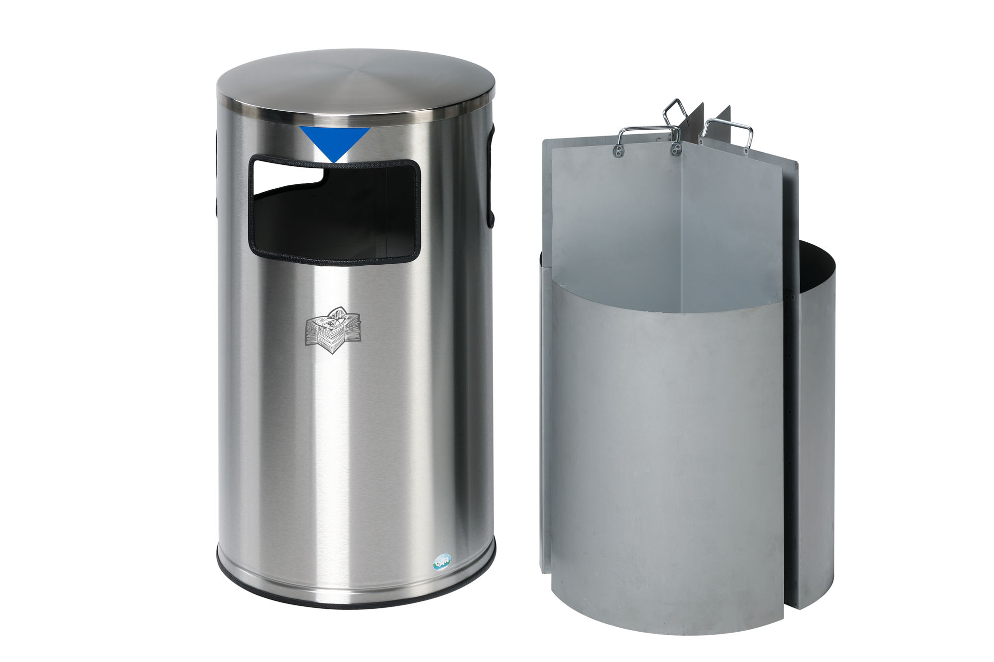 Die VAR WSS 60 ist Ihre platzsparende und trotzdem leistungsstarke Recycling-Station für Büro, Shop oder Gastronomie. Wählen Sie zwischen hochwertigem V2A-Edelstahl oder elegant pulverbeschichtetem Antik-Silber: Beide Varianten sind korrosionsbeständig, leicht zu reinigen und für den Dauerbetrieb im Innen- und überdachten Außenbereich konzipiert.