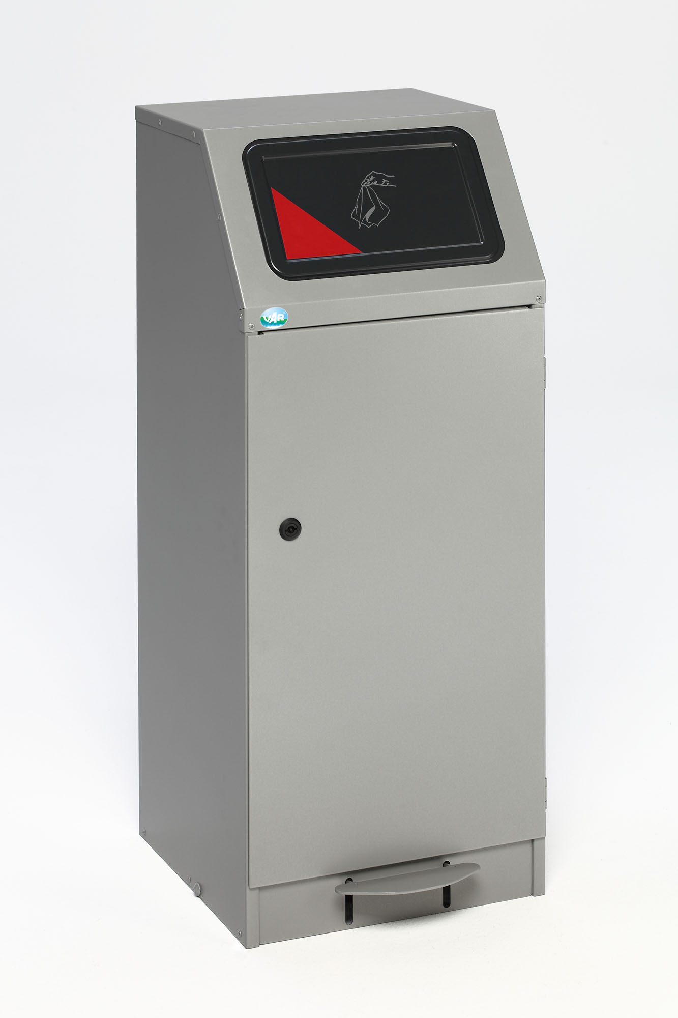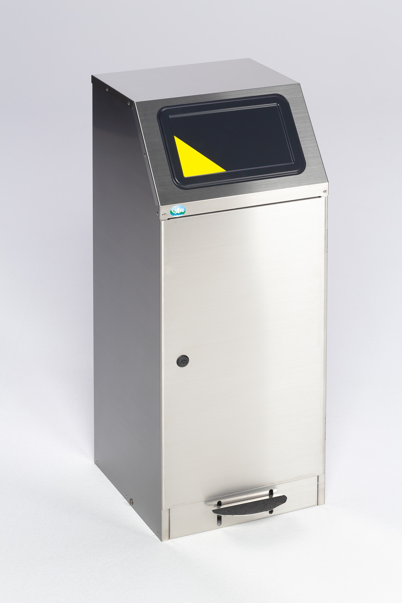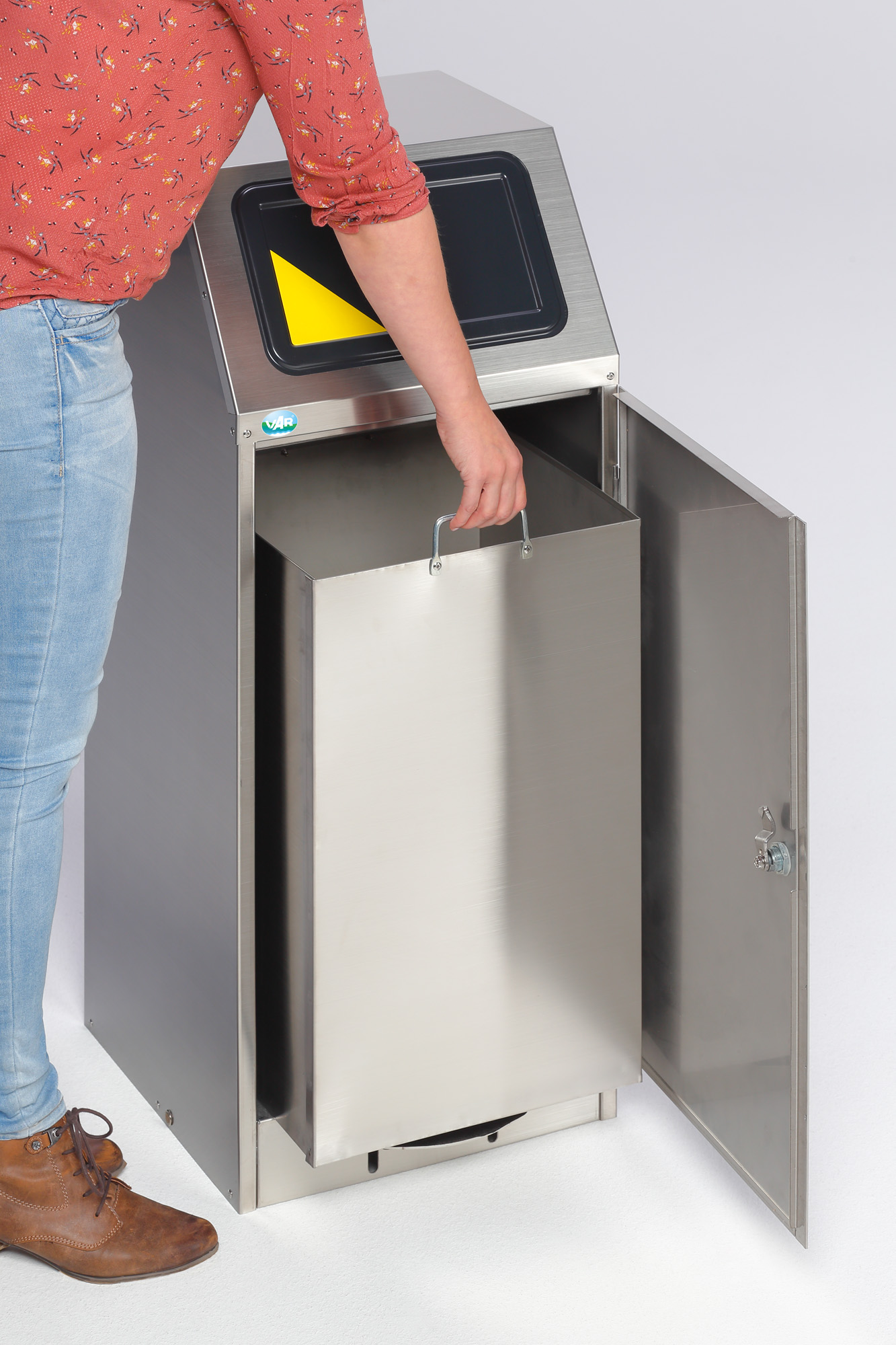 Die VAR WSG 45 (43 L) und WSG 75 (75 L) sind robuste, selbstlöschende Abfallsammler aus verzinktem Stahlblech mit hygienischer Fußpedal-Betätigung. TÜV-zertifiziert für den Brandschutz, verfügen sie über einen abschließbaren Frontdeckel, praktischen Inneneinsatz und farbige Eckmarker zur klaren Wertstoffkennzeichnung.